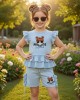 Design: Features trendy ruffle sleeves on the top and stylish ruffles on the sides of the shorts.